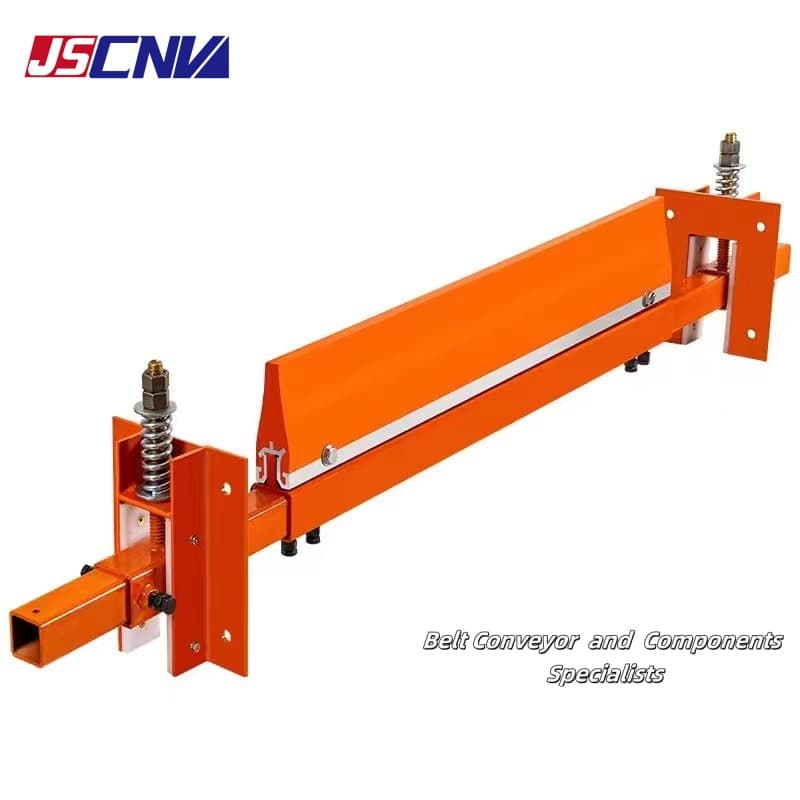One-line cleaner er for rengjøring av returbeltet. Den brukes hovedsakelig foran den bakre bøyeskiven og foran den tunge vertikale strammeanordningen til båndtransportøren. Den kan spesielt brukes til å rengjøre den tomme delen av toveisløpsbeltet. Den har egenskapene til syre- og alkalimotstand, flammehemmende og antistatisk, høy slitestyrke og skader ikke beltet. Bladet er laget av høystyrke polyuretan, den V-formede designen sikrer beltets renhet, og den automatiske gravitasjonsdesignen sikrer automatisk kompensasjon når bladet slites ut.
